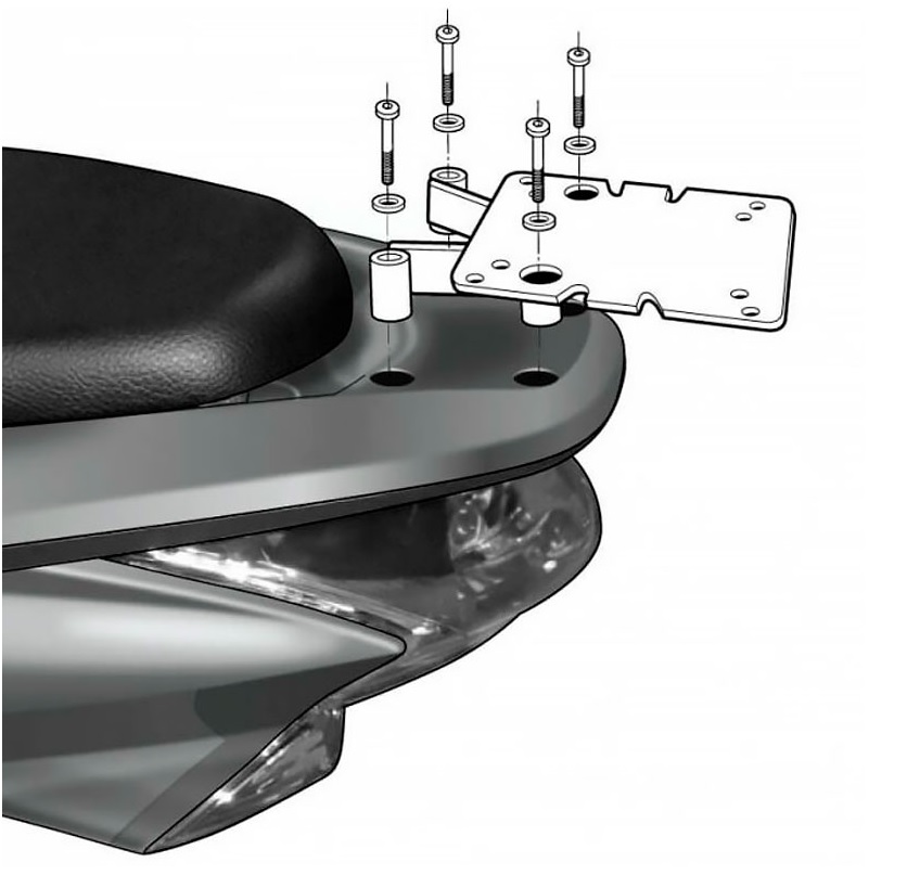 – sub acest cod se livreaza doar placa metalica + suruburile aferente, pe care se fixeaza gratarul de plastic al top case-ului + top case-ul;