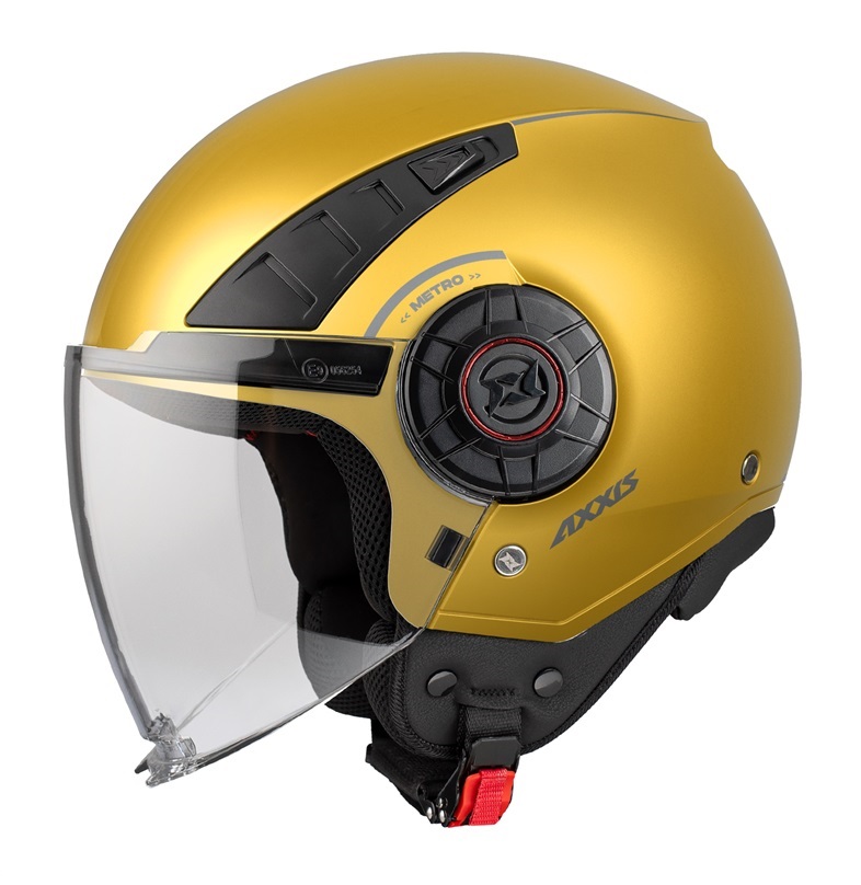 Axxis Metro S este una dintre cele mai atractive si stilate casti open face (jet) de pe piata. Designul castii ii confera personalitate, si datorita vizierei mari, a ventilatilor din partea superioara a castii dar si mecanismelor de viziera branduite cu logo-ul Axxis.