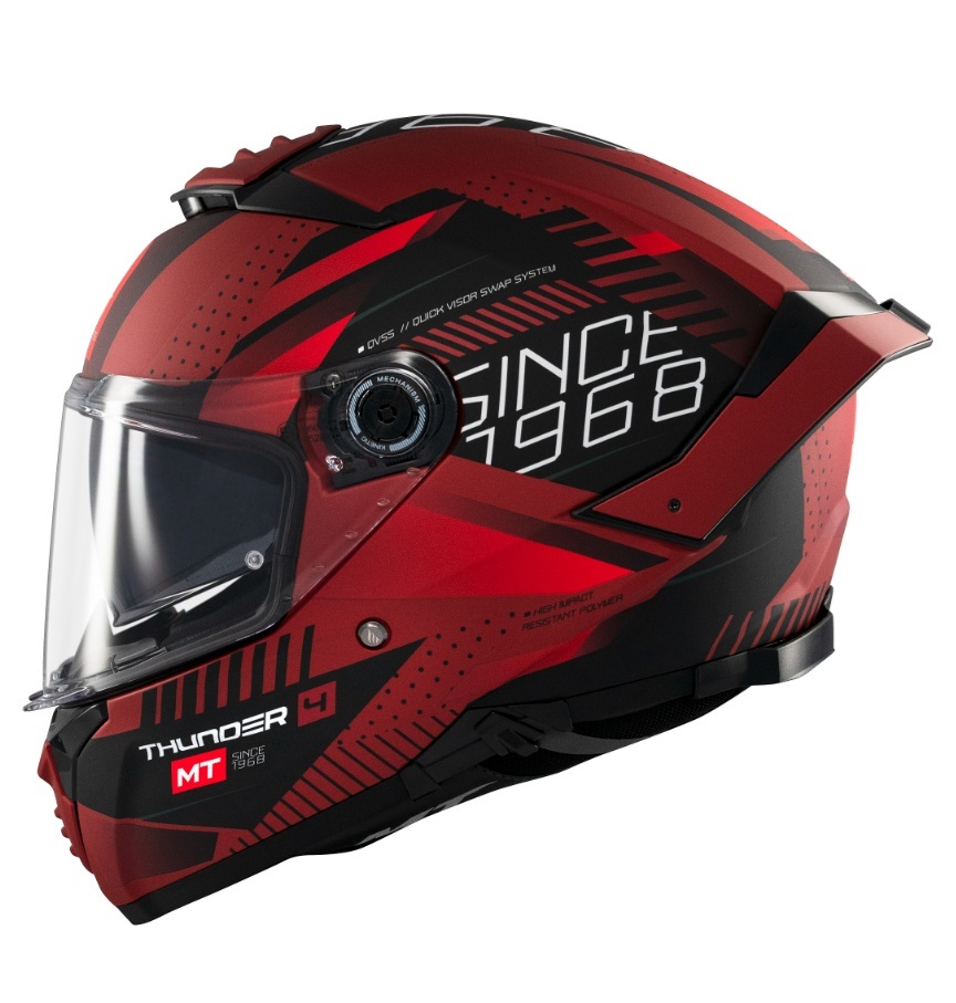 • MT-QVSS – Quick Visor Swap System – sistem proiectat intern de echipa de ingineri MT si echipat in premiera pe casca Thunder 4 SV;