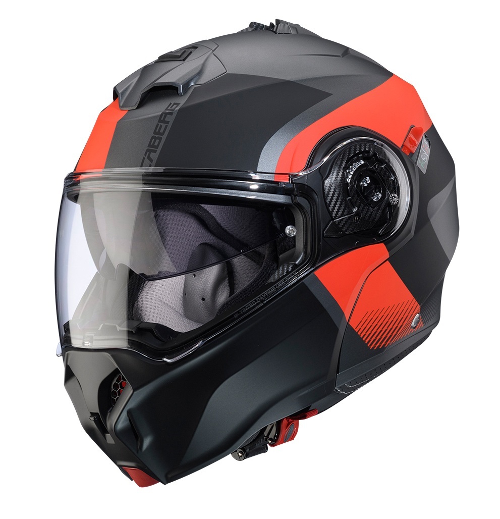 Casca modulabila (flip-up) Caberg model Duke Evo SV Indy L2 gun metal (titanium)/rosu fluor/negru mat Pinlock ready – lentila Pinlock inclusa
