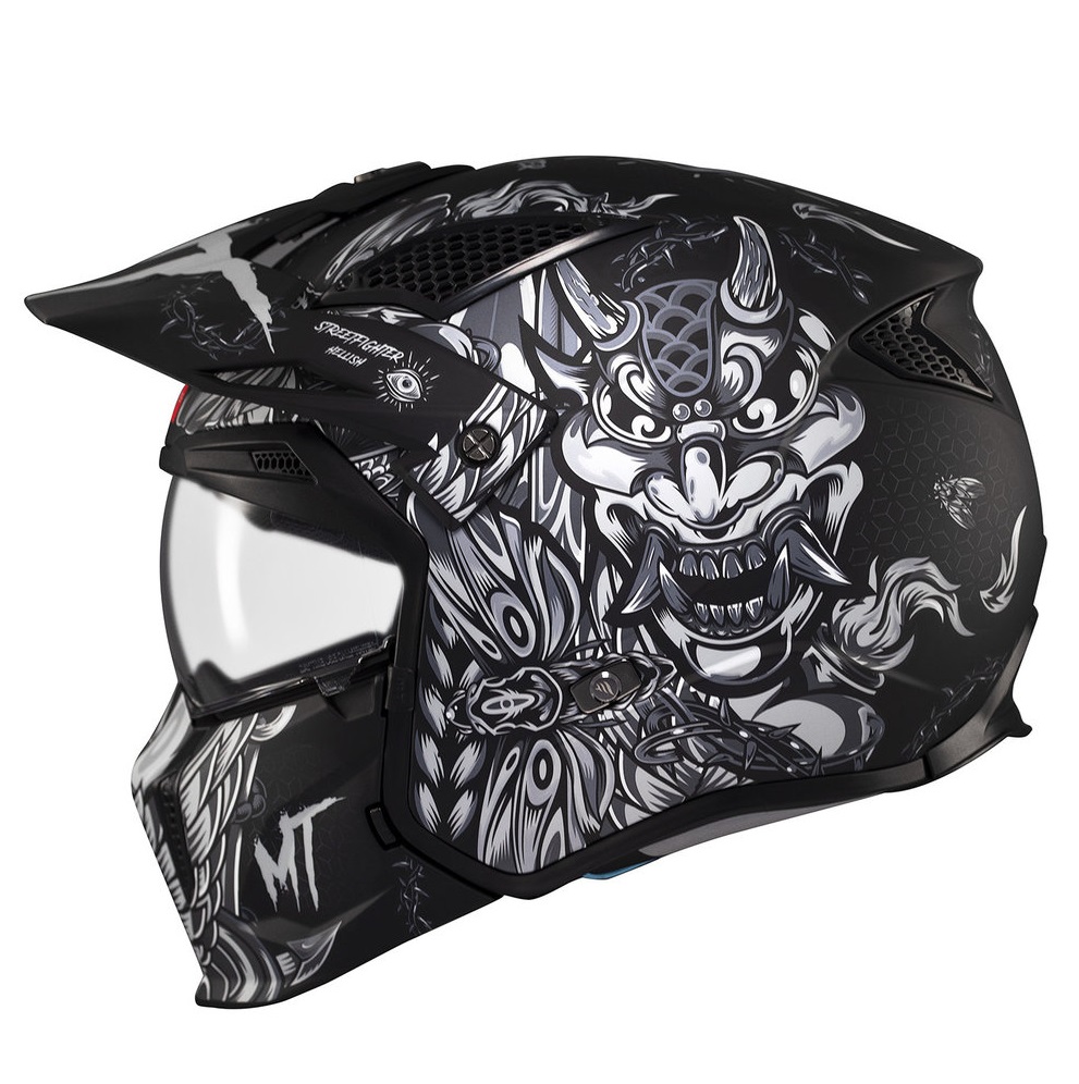 Casca MT Streetfighter SV S B2 Hellish negru mat (ochelari soare integrati) – masca (protectie) barbie si cozoroc detasabile – omologare noua ECE 22.06
