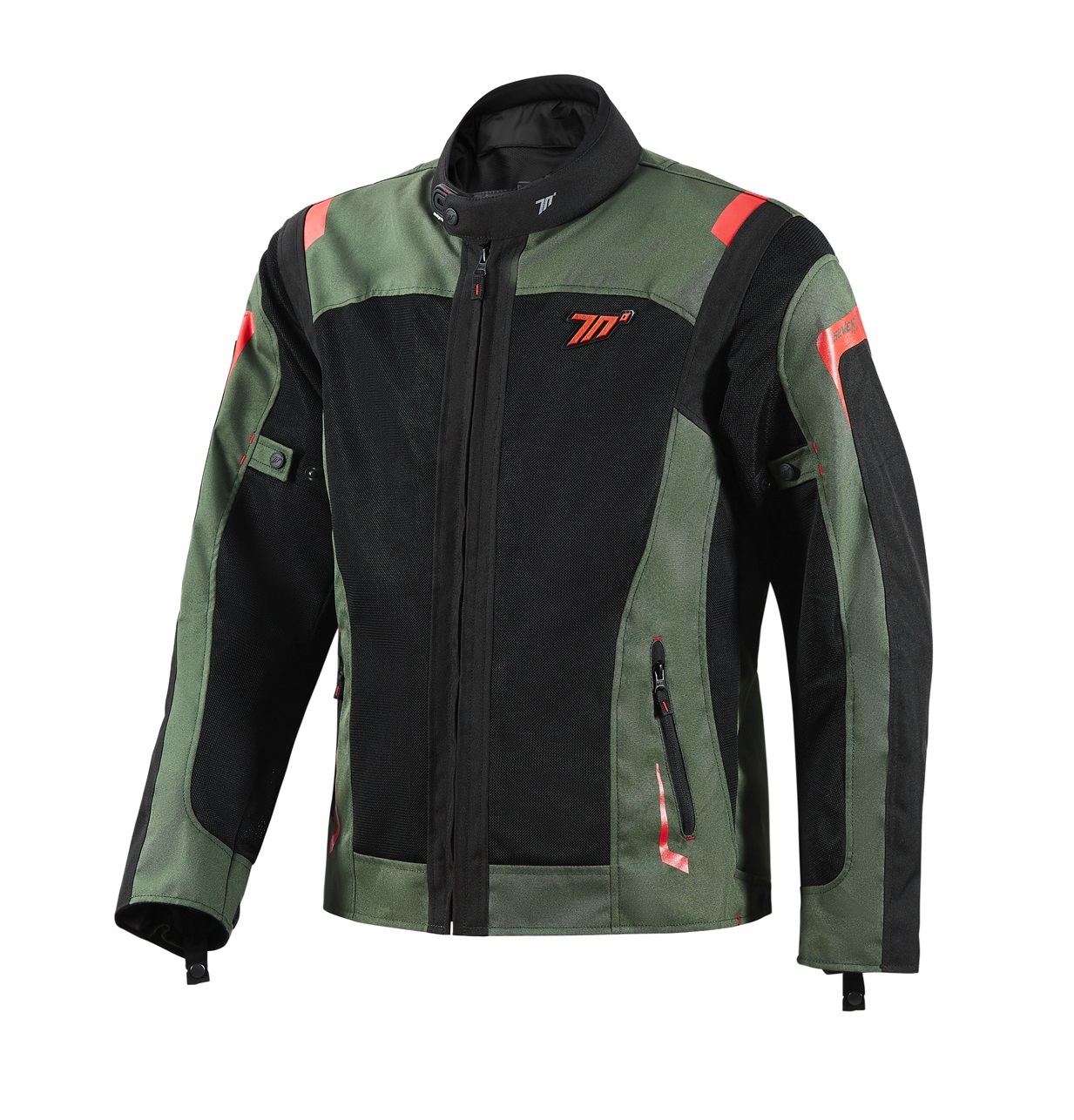 Geaca (jacheta) motociclete barbati Touring Seventy vara model SD-JT66 Sahara culoare: verde military/rosu